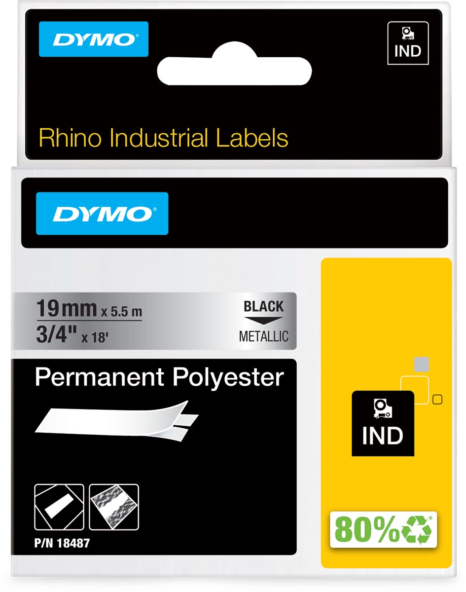ft 19 mm x 5,5 m, polyester, zwart op metaal