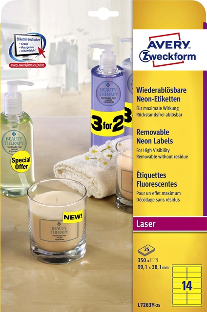 * Moet u de aandacht trekken? * Of misschien heeft u een aantal belangrijke berichten die dringend gelezen moeten wroden of het poststuk kan breekbaar zijn en u wilt dat de ontvanger het met zorg behandeld. * Gebruik Avery attentieverhogende etiketten om echt op te vallen. * Deze neon gele etiketten kunnen worden bedrukt met uw eigen boodschap, dus perfect voor het etiketteren van pakketten en andere belangrijke post. * Gratis online templates en ontwerpsoftware beschikbaar op http://www.avery.eu.