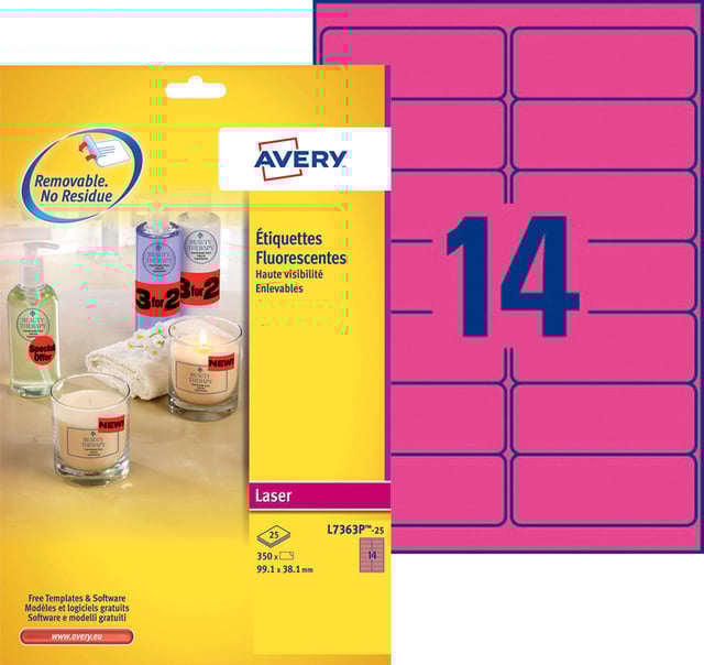 Etiket Avery L7363P-25 99.1×38.1mm neon roze 340 etiketten