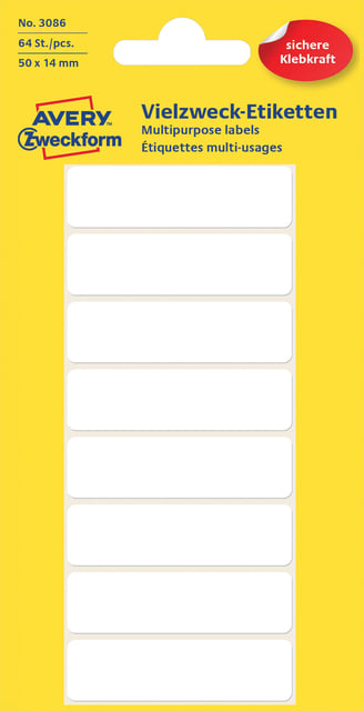Etiket Avery Zweckform 3086 50x14mm wit 64 etiketten