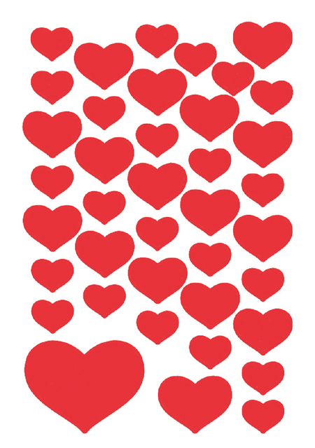 * Zelfklevende hartjesstickers uit onze nieuwe LOVE-serie. * Zeg het met hartjes * Onze fraai vormgegeven stickers geven nog meer uitdrukking aan boodschappen uit het hart. * Voor cadeaus die uit het hart komen.