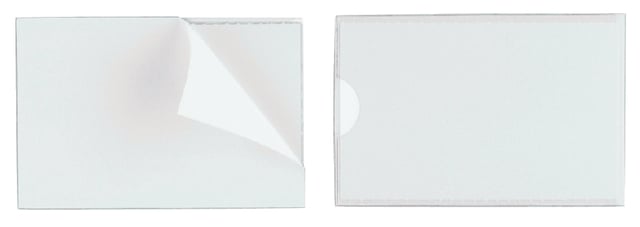 Zelfklevende hoesjes voor het labelen van ordners, hechtmappen en andere bureau-accessoires. 1 pak x 10 stuk Zelfklevende hoes van transparante zachte folie.