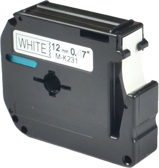 • 1 rol huismerk label tape voor Brother M-K231 – Zwart op wit, 12 mm x 8 m