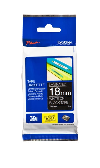 * Deze originele gelamineerde TZe-345 labeltape is geschikt voor gebruik in diverse Brother P-touch labelprinters. * De tape is bijzonder veelzijdig dankzij de goed leesbare witte tekst op zwarte tape . * Dus erg handig voor bij u thuis, op kantoor en op andere werkplekken. * Breedte 18mm, lengte 8m. * Originele Brother tapecassette van hoge kwaliteit. * Gegarandeerd duurzame en goed leesbare labels.