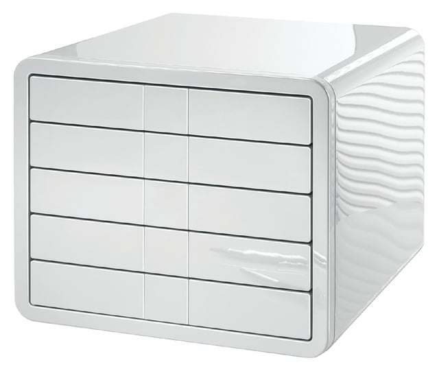 * De iBox-serie is een innovatieve bureau-accessoireserie die zich kenmerkt door een elegant design. * Stijlvol met hoogglanzende afwerking. * Deze serie combineert perfect de vraag naar een mooi design met functioneel gebruik. * Strakke lijnen voor het moderne kantoor. * De iBox Innovatieve ladenkast voor op het bureau. * Tijdloos, eigenzinnig en elegant vormgegeven. * De ladenkast bevat 5 laden tot formaat C4 (229x324mm). * De ladehoogte is 40mm. * Inclusief beschrijfbare labels. * Vervaardigd van hoogwaardig kunststof met hooglanzende afwerking. * Afmeting: 295x368x355mm. * Binnenmaat is 200x229x324mm