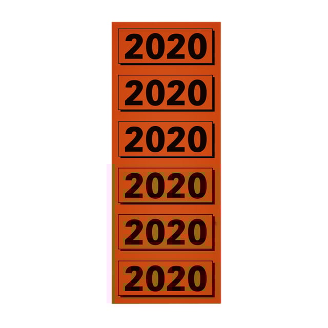 * Rugetiketten met jaaraanduiding voor het optimaal overzichtelijk opbergen van uw documenten. * Zelfklevend. * 57x25mm. * Kleur rood. * Jaar 2020. * Zakje à 120 stuks.