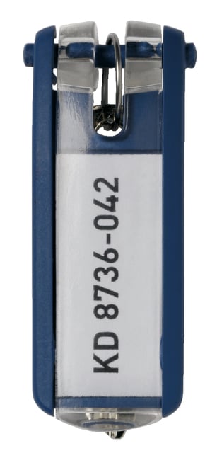 * Het etiket is steeds leesbaar omdat de sleutel altijd achter het sleutellabel verborgen blijft. * Altijd een duidelijk overzicht in één oogopslag. * Het 'easy-open'-mechanisme zorgt ervoor dat het etiket vervangen kan worden zonder de sleutel van de sleutelring te verwijderen. * Labels zijn te bedrukken met te downloaden template, www.durable.nl